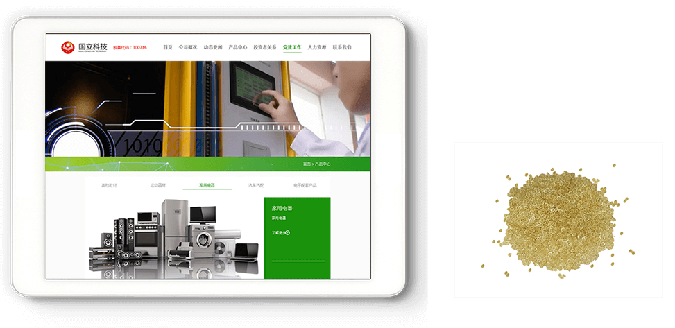國立科技以大力推行節(jié)能低碳環(huán)保材料,發(fā)展科技產(chǎn)業(yè),以推動世界綠色環(huán)保節(jié)能低碳為理念,專注低碳、環(huán)保、再生高分子材料及高分子材料制品的研發(fā)、生產(chǎn)、銷售和技術(shù)服務(wù),產(chǎn)品被廣泛應(yīng)用于高檔鞋材、成品鞋、電子配套產(chǎn)品、運動器材、家用電器、汽車汽配等領(lǐng)域。