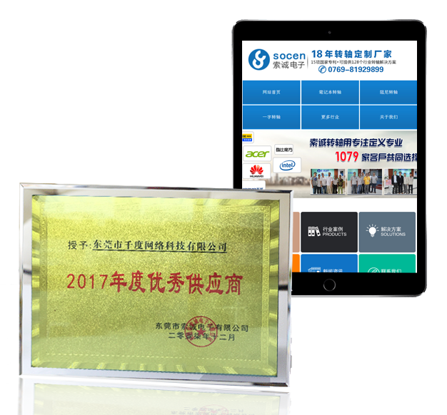 5年來,在千度網(wǎng)絡(luò)的支持下,【索誠電子】網(wǎng)絡(luò)營銷從0開始,到目前轉(zhuǎn)軸行業(yè)網(wǎng)絡(luò)營銷第一名,成為華為、聯(lián)想、Intel、惠普供應(yīng)商,目前公司99.9%的訂單來源于網(wǎng)絡(luò),年產(chǎn)值近億元!2018年新年來臨之際,在100多家供應(yīng)商中,千度網(wǎng)絡(luò)成為索誠電子三家“2017年度優(yōu)秀供應(yīng)商”之一。