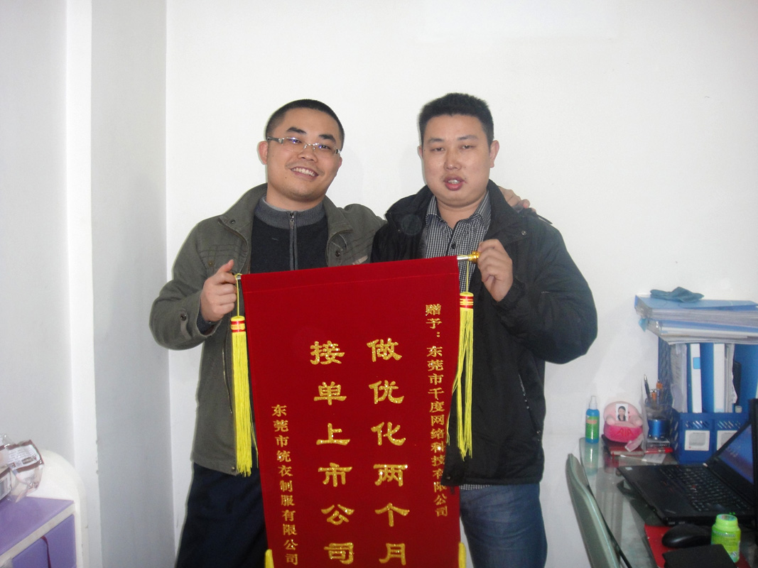 讓我感到非常意外的是,網(wǎng)站三天就搞好了,優(yōu)化也一周就有詞“車間工作服”排到百度等搜索引擎首頁(yè)了,他們的速度真是太快了。不到一個(gè)月,連工作服定做,定做廠房這些非常熱門的關(guān)鍵詞,都排到了首頁(yè)。真正實(shí)現(xiàn)了幾十個(gè)關(guān)鍵詞排到各大搜索引擎首頁(yè)的目標(biāo)。緊接著,QQ詢盤,電話咨詢,郵件溝通的越來(lái)越多。合作不到兩個(gè)月,我們就順利拿下了東莞萬(wàn)江一個(gè)上市公司的訂單,F(xiàn)在,我們每個(gè)月都陸陸續(xù)續(xù)地接到不少訂單,可以說(shuō)商機(jī)無(wú)限。千度科技客服部每周都幫我們維護(hù)更新網(wǎng)站,后面還幫我們培訓(xùn)了SEO基礎(chǔ)常識(shí),網(wǎng)絡(luò)營(yíng)銷客服溝通技巧,電話行銷等一系列的課程,這些給我們的幫助都非常大。到公司后來(lái)決定在東莞南城成立銷售中心,成立贛縣生產(chǎn)基地和于都生產(chǎn)基地,這些公司的跨越式發(fā)展跟千度科技的幫助也是分不開的。非常感謝周總,感謝千度科技!