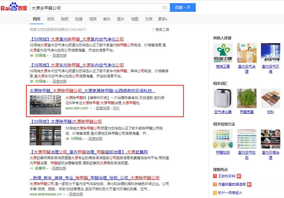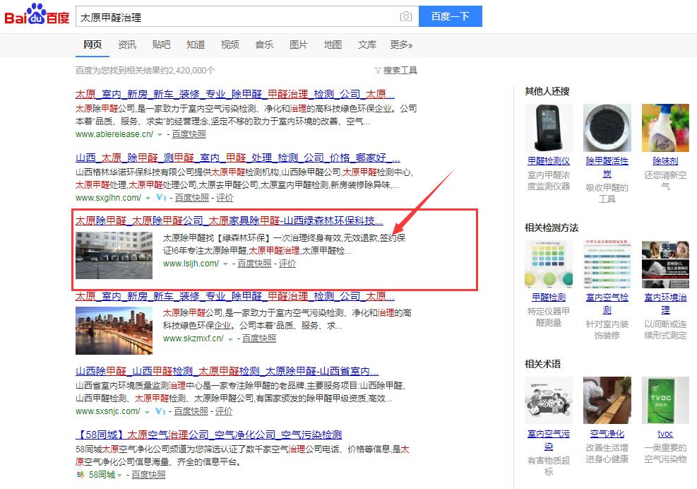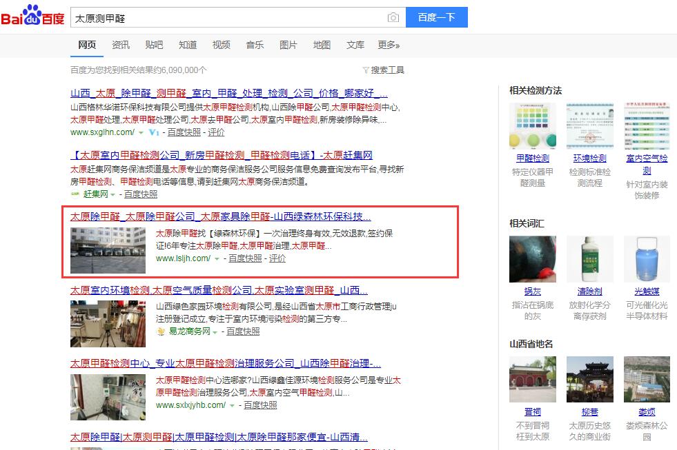 山西綠森林是做本地空氣治理的公司,通過(guò)網(wǎng)絡(luò)找到千度合作后,四年來(lái),企業(yè)區(qū)域核心關(guān)鍵詞“太原除甲醛、太原甲醛治理、太原甲醛檢測(cè)”等關(guān)鍵詞穩(wěn)定首頁(yè)4年。感謝90后帥氣的張總多年來(lái)的支持。